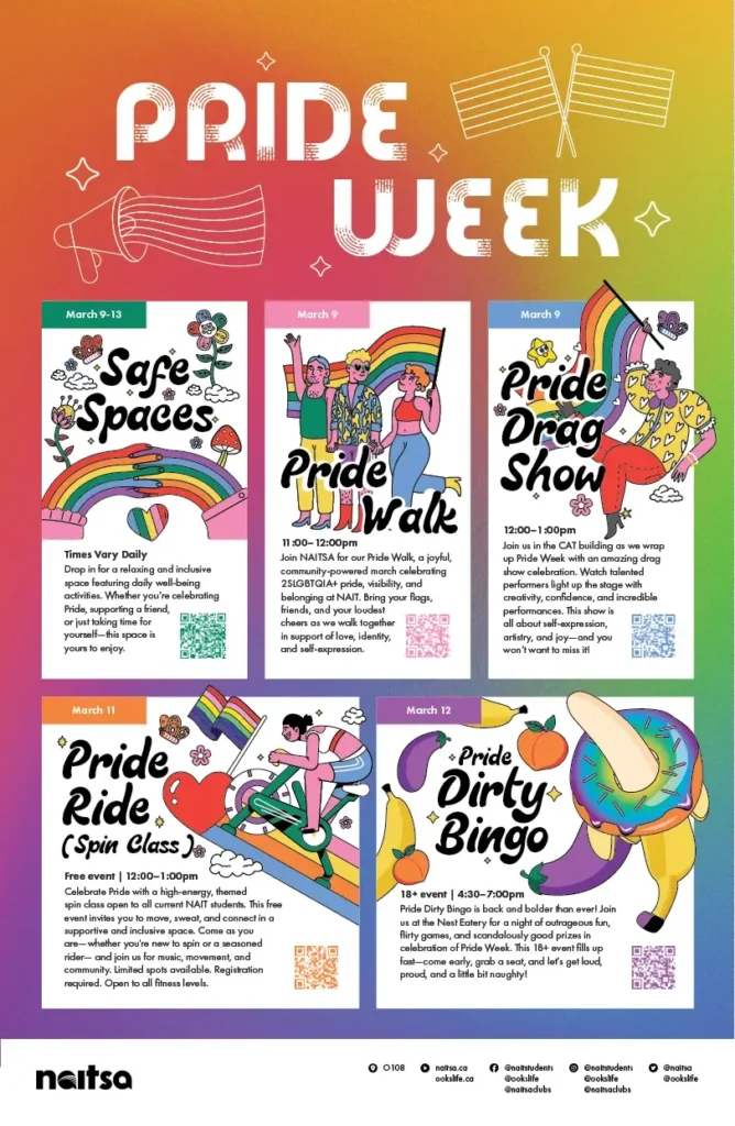 Monday, March 9th: Pride Walk. Open to NAIT students: Link here