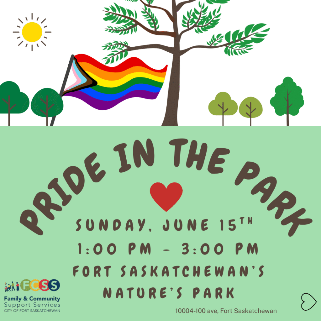 Fort Saskatchewan FCSS is hosting Pride in the Park as part of the Fort Saskatchewan Pride Week festivities. We are inviting anyone interested to come and enjoy the river valley views, play some fun lawn games or play at the park, bring a lunch.